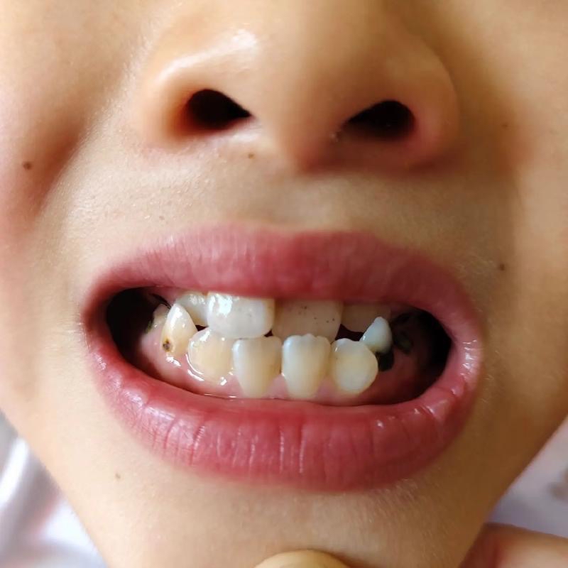 2:孩子的口腔內(nèi)已經(jīng)有蛀牙。對(duì)于其他存在很大患齲風(fēng)險(xiǎn)的牙齒,也需要進(jìn)行窩溝封閉。