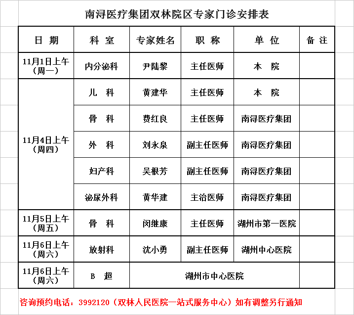 雙林醫(yī)院專家排班2021-11-1/2021-11-7