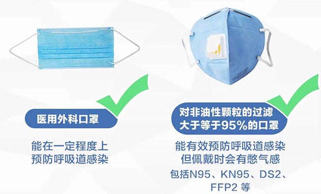 以自我防護(hù)、降低呼吸道感染風(fēng)險(xiǎn)為目的,佩戴醫(yī)用外科口罩、N95型口罩都可以。