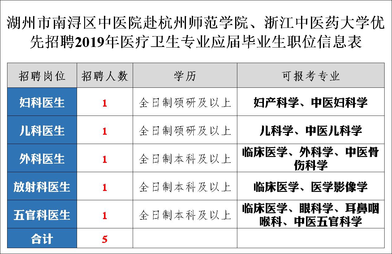 根據(jù)《南太湖醫(yī)療衛(wèi)生領(lǐng)軍人才引進(jìn)實施辦法》、《關(guān)于進(jìn)一步加強衛(wèi)技人才引育工作的實施意見》等有關(guān)規(guī)定,現(xiàn)就南潯區(qū)中醫(yī)院赴杭州師范大學(xué)、浙江中醫(yī)藥大學(xué)優(yōu)先招聘2019年醫(yī)療衛(wèi)生專業(yè)應(yīng)屆畢業(yè)生具體事項公告如下: