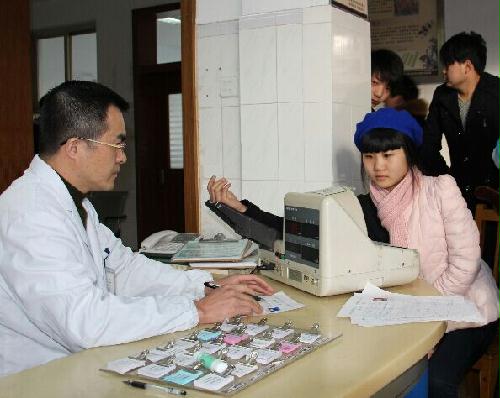 第一天值班的是院長(zhǎng)陸建龍,戴上志愿者牌子的他穿戴整齊,準(zhǔn)時(shí)出現(xiàn)在門診大廳里。當(dāng)天正值周一,前來掛號(hào)看病的市民也比往日多一些,即使6個(gè)掛號(hào)窗口全開,但依然滿足不了市民的需求,其中也包括常規(guī)體檢的市民。